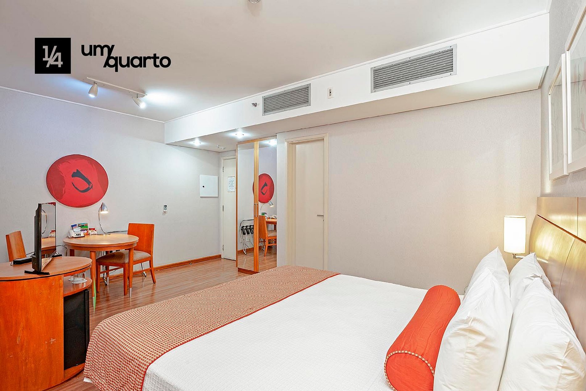 Apartamento da categoria Luxo de 27m², equipada com 1 cama de casal, ar condicionado, frigobar, TV de tela plana à cabo, mesa de trabalho e WiFi gratuito.