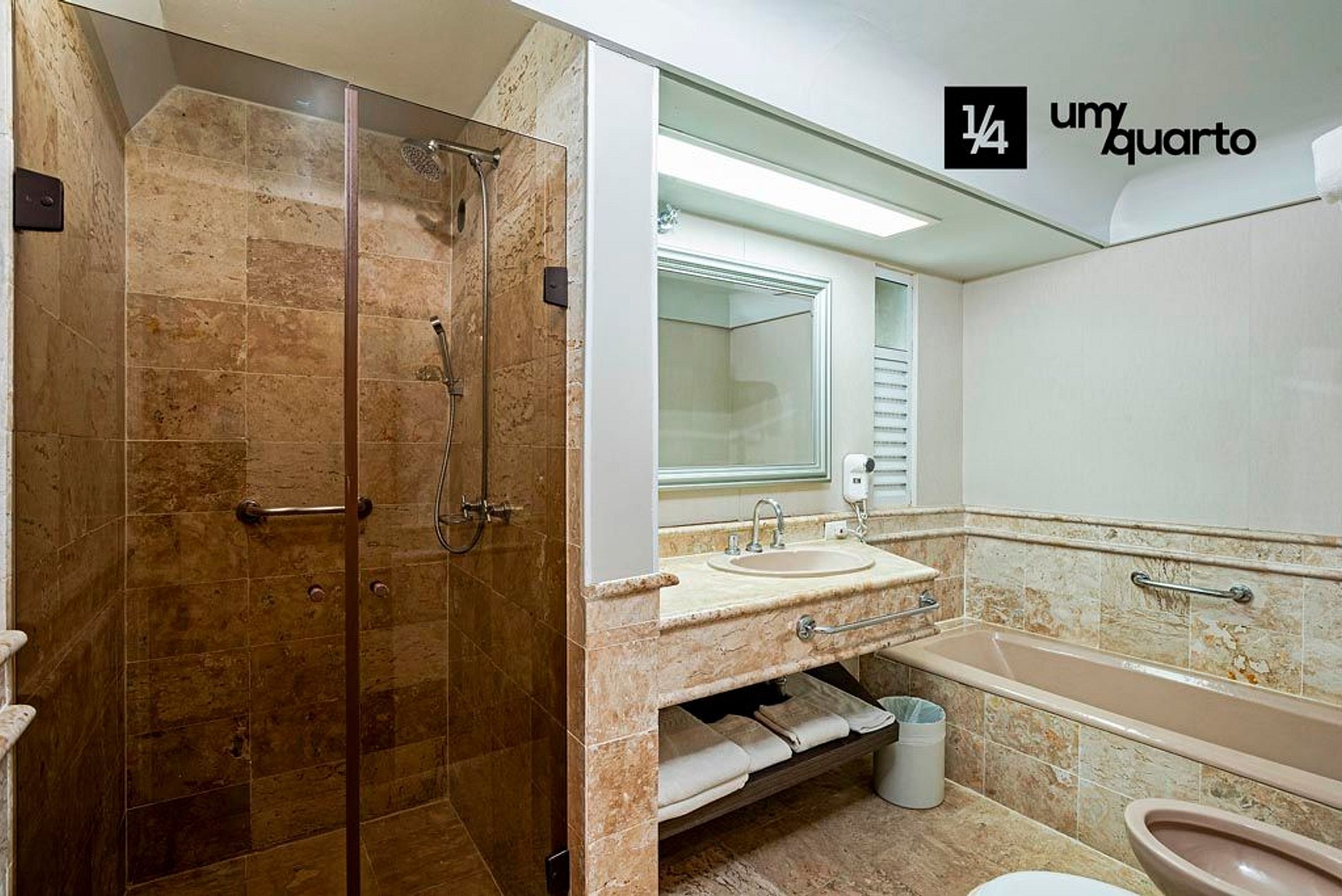 Decoração elegante, equipado com 1 cama de casal e 2 camas de solteiro, ar condicionado split, frigobar, TV a cabo, mesa de trabalho e WiFi gratuito.