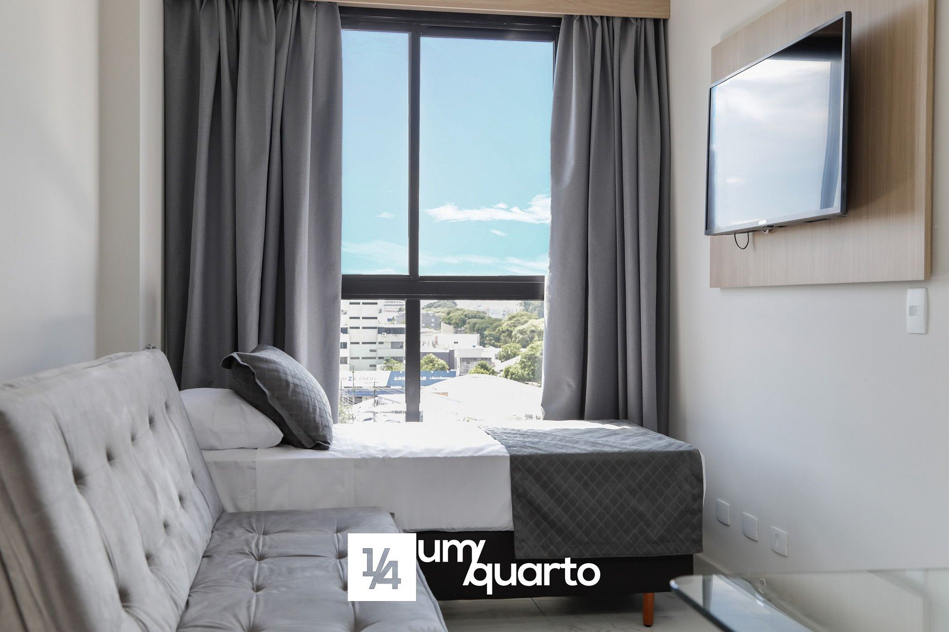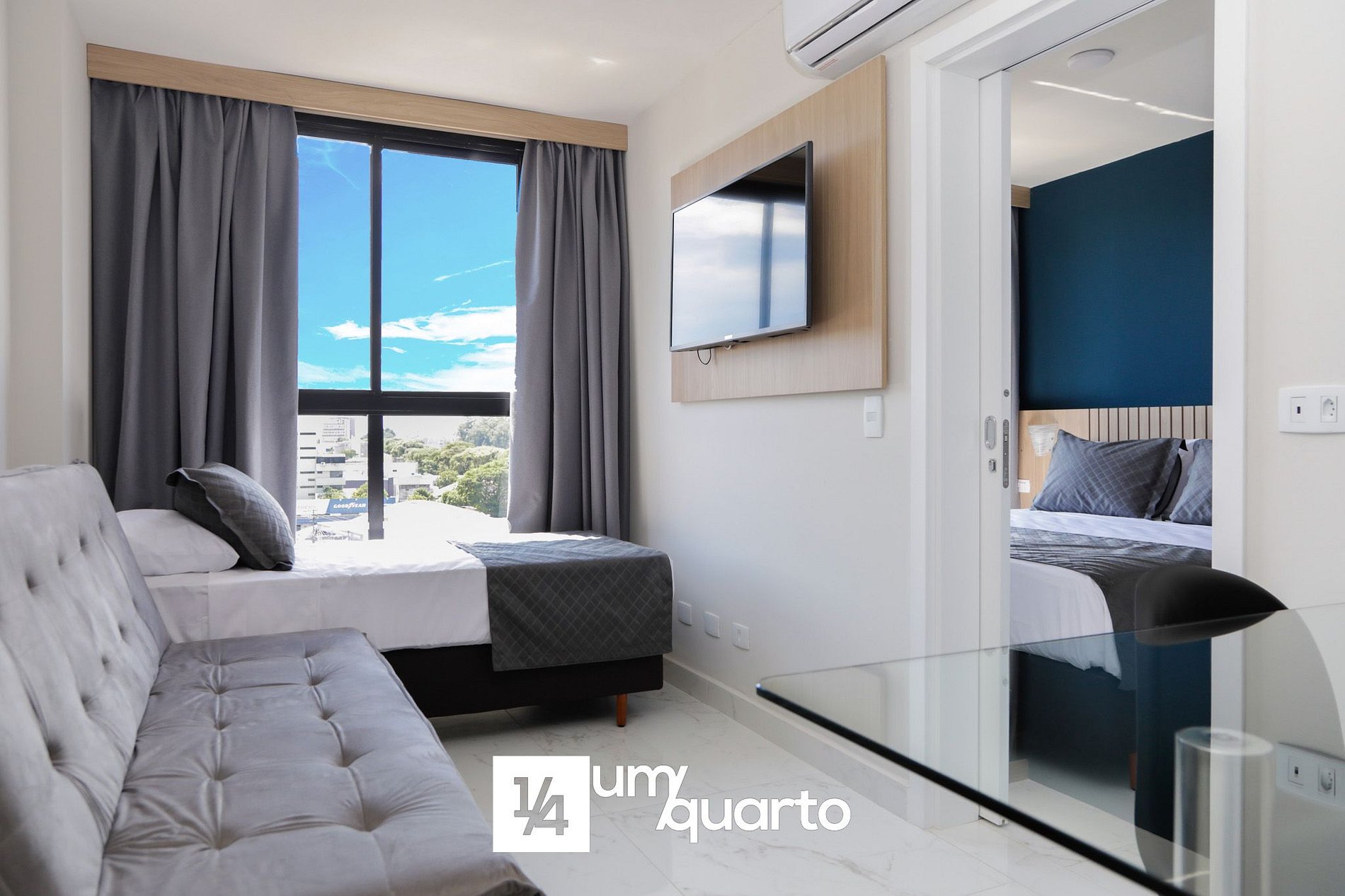 O apartamento está localizado no Hotel Slim Curitiba João Bettega.