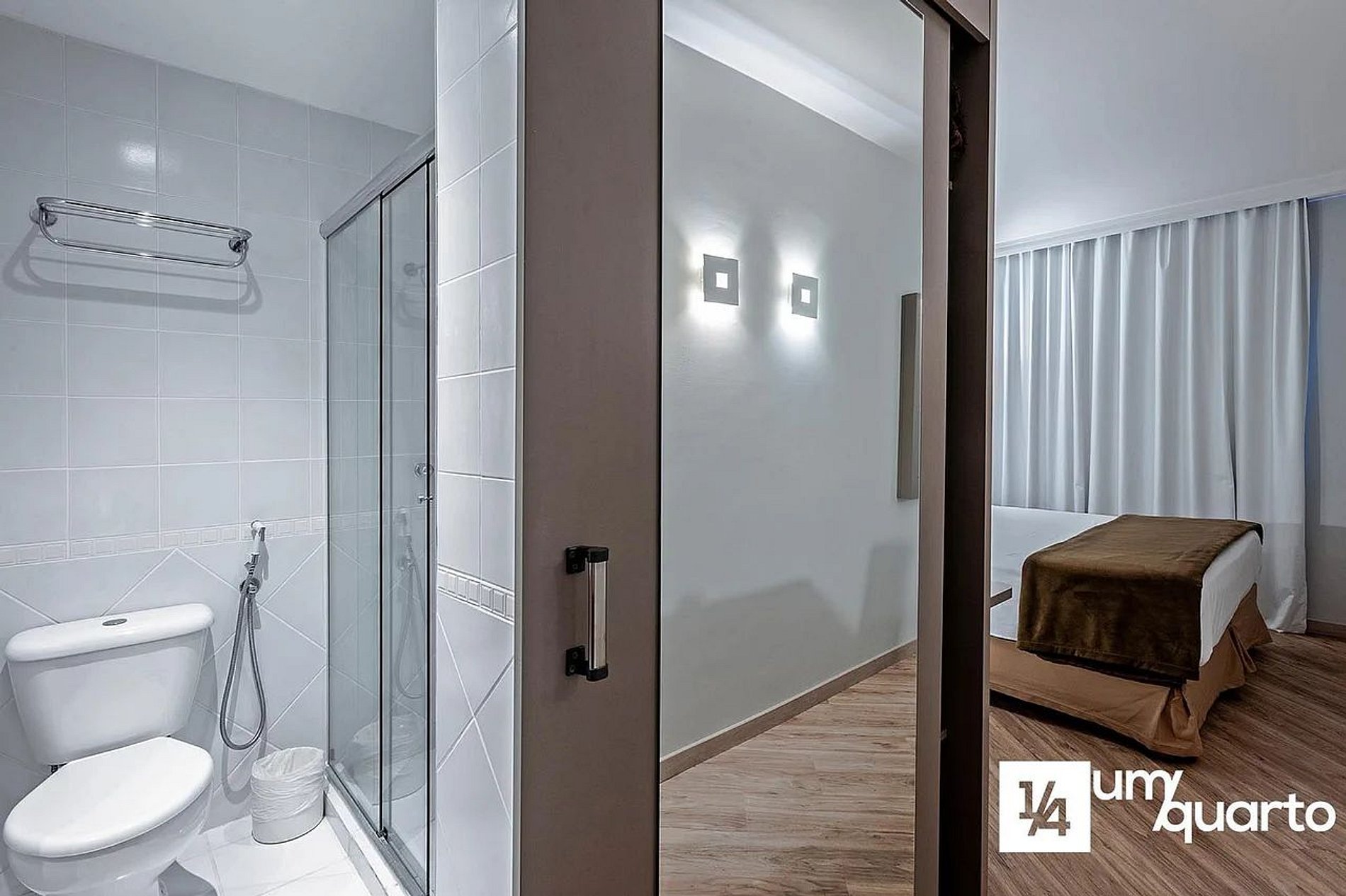 O apartamento está localizado no Hotel Slim Curitiba Alto da XV