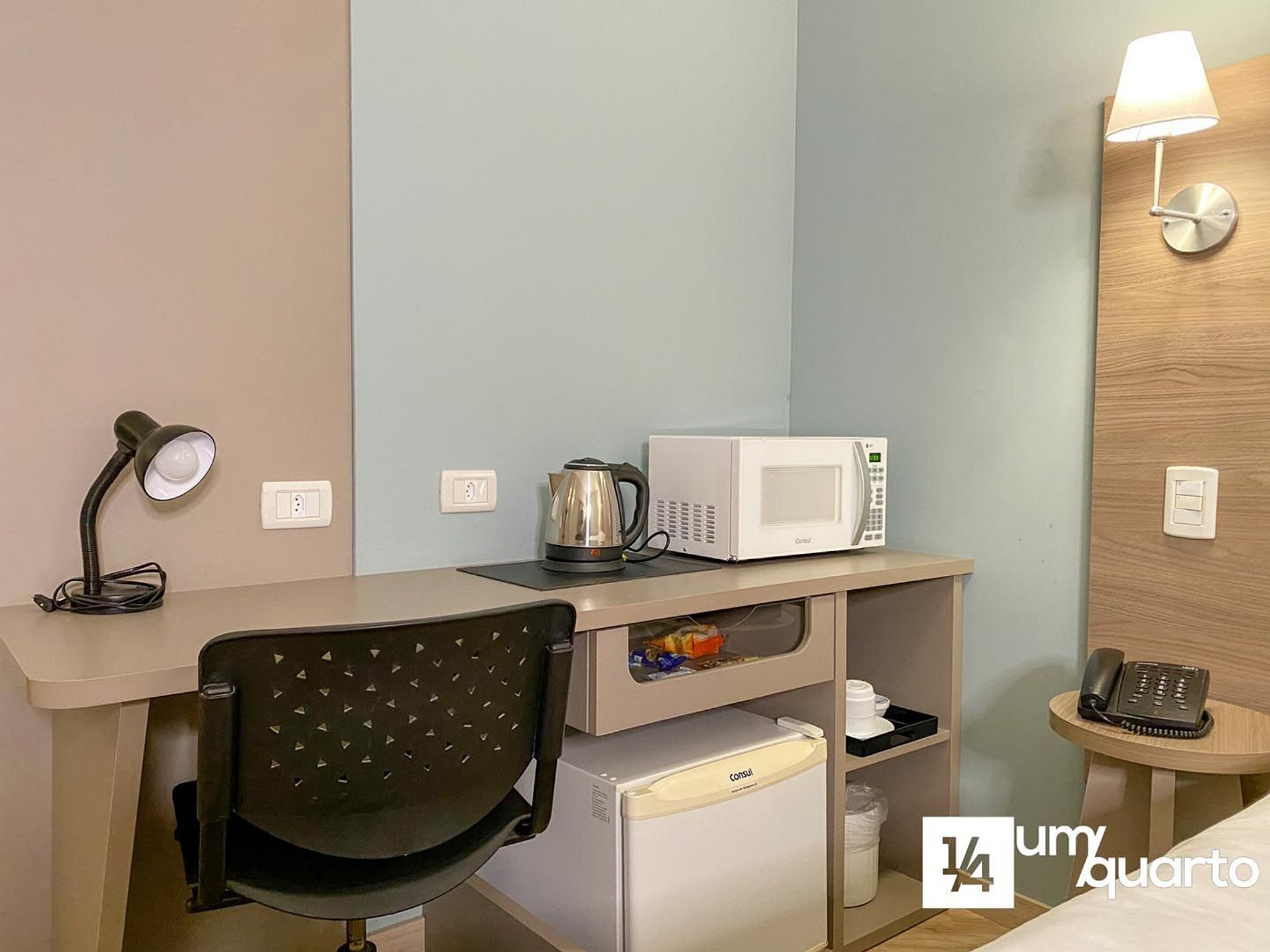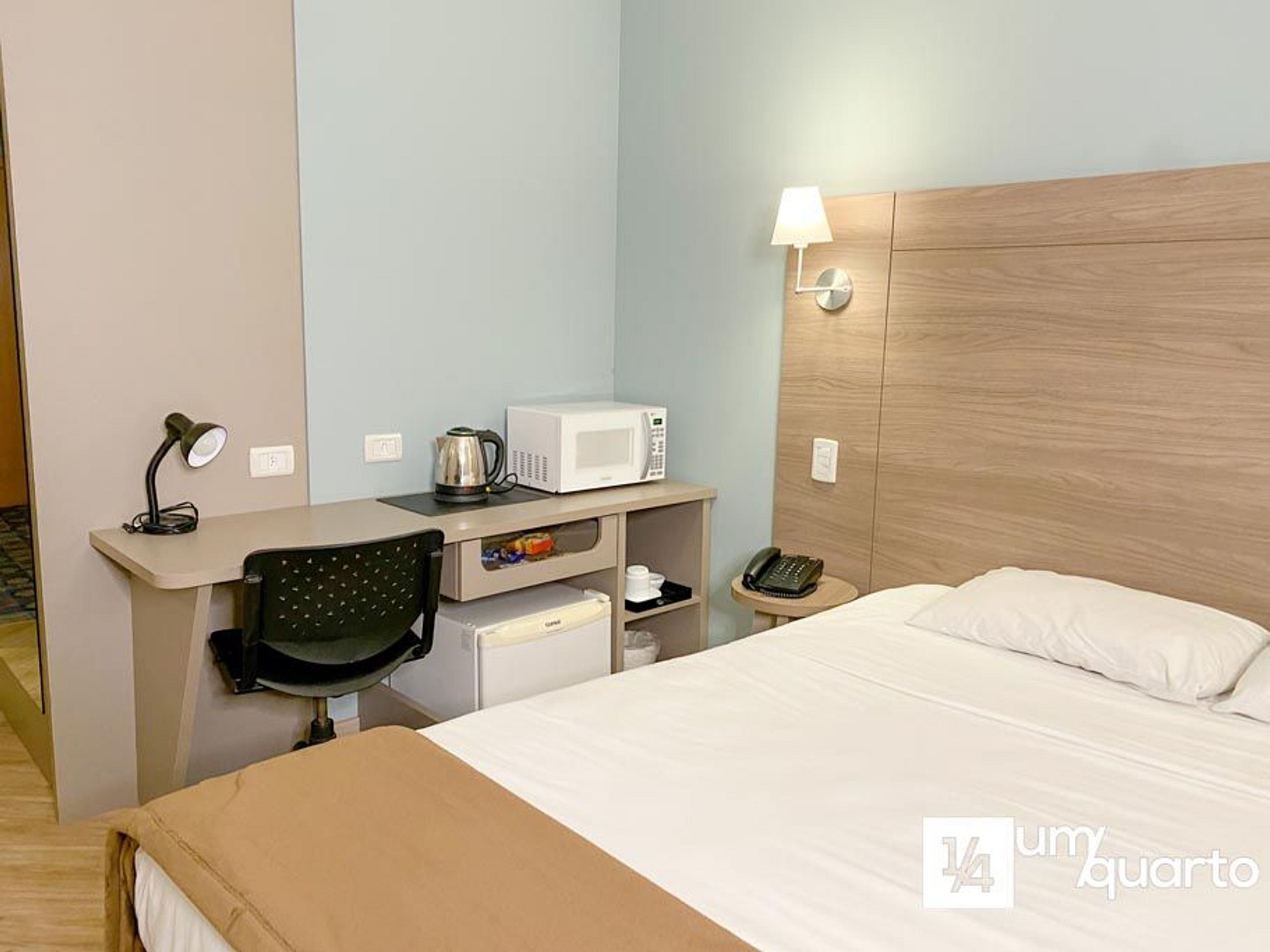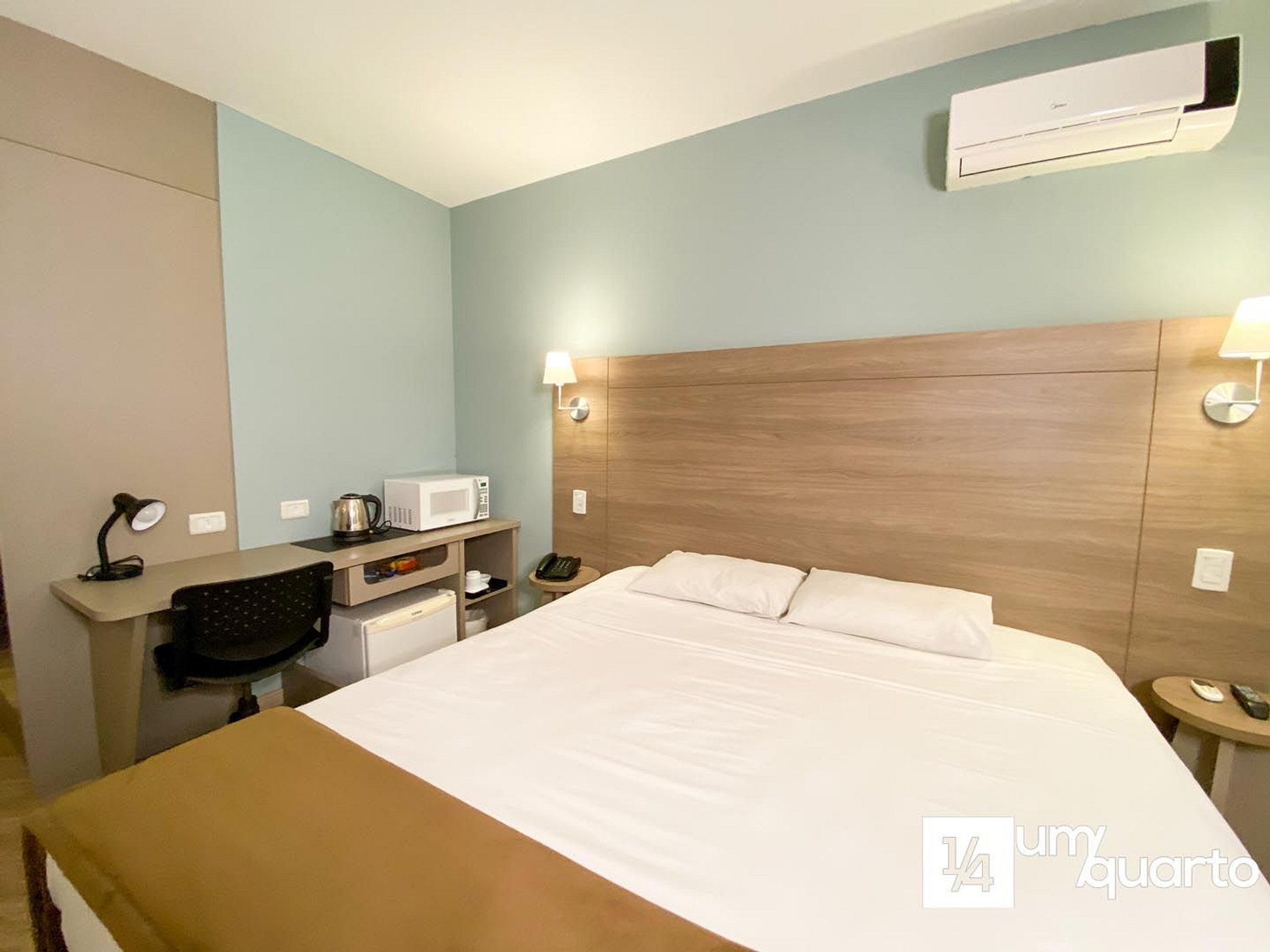 Apartamento de 18m² , equipado com 1 cama de casal, Micro-ondas, talheres, Ar Condicionado Split,, Secador de cabelo, bancada de trabalho e WI-FI gratuito.