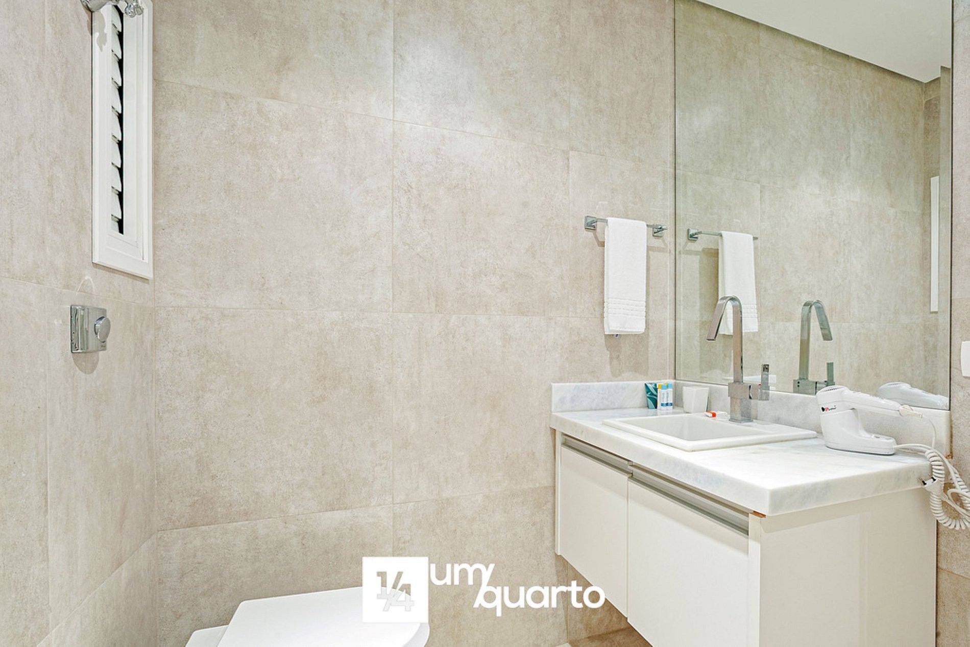 Conta ainda com estação de trabalho e WI-FI gratuita de 50mb, TV de tela plana LCD, ar condicionado frio e quente, secador de cabelo e kit de amenities.