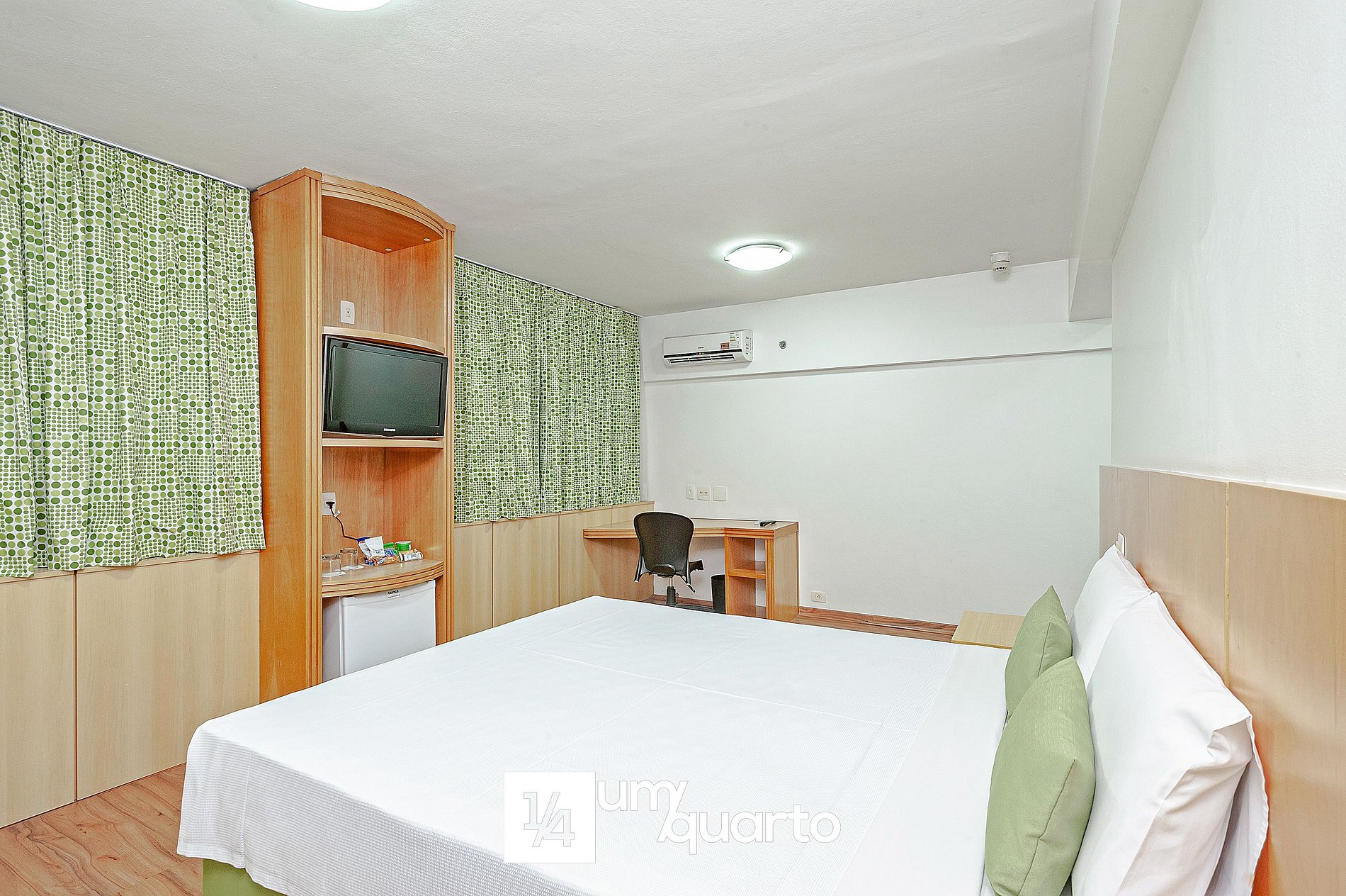 Acomodação mais espaçosa e silenciosa, equipada com 1 cama queen size, TV 32'' a cabo, ar-condicionado split, bancada de trabalho, WI-FI e secador de cabelo.